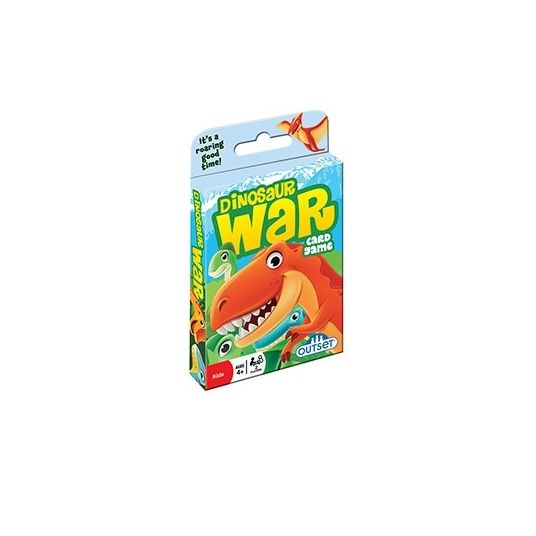 The classic card game "War" now in Jurassic splendor. Features nine roarsome dinosaurs on 36 raptorous mega oversized cards. The battle of the Dinos is fierce! Who will lose their cards first, and who will get the best dino-score? What are you waiting for... grab your T-rex, Raptor, and Sauropod cards and let the prehistoric battle begin! Ages 4+